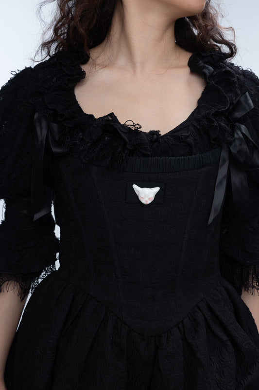 Angry Puss Detachable Cat Charm Silk Choker Necklace
