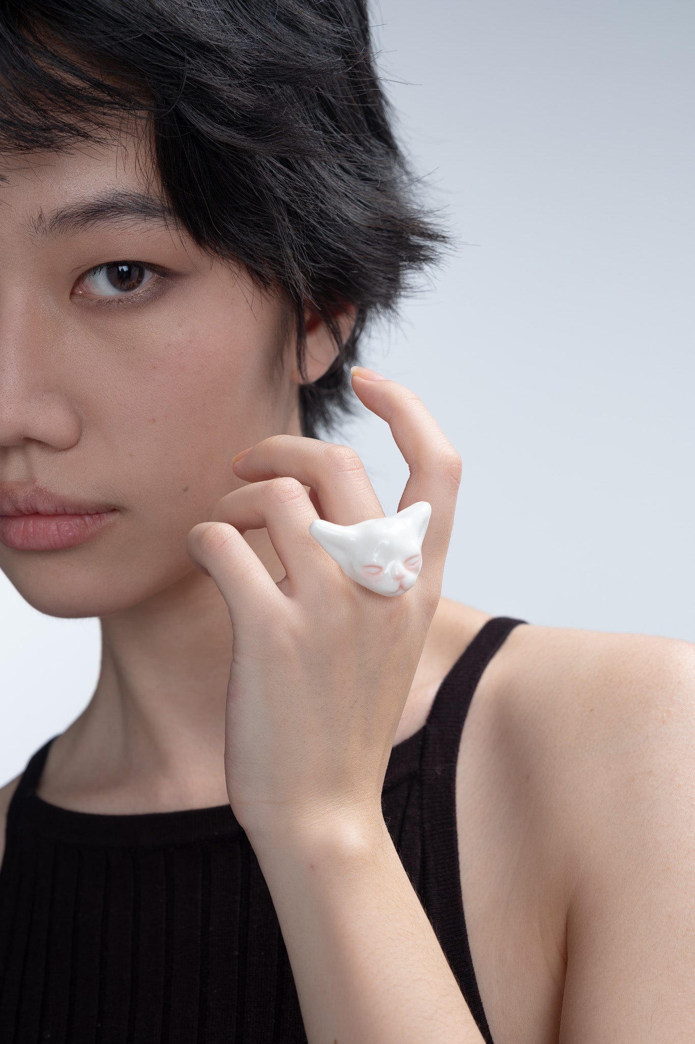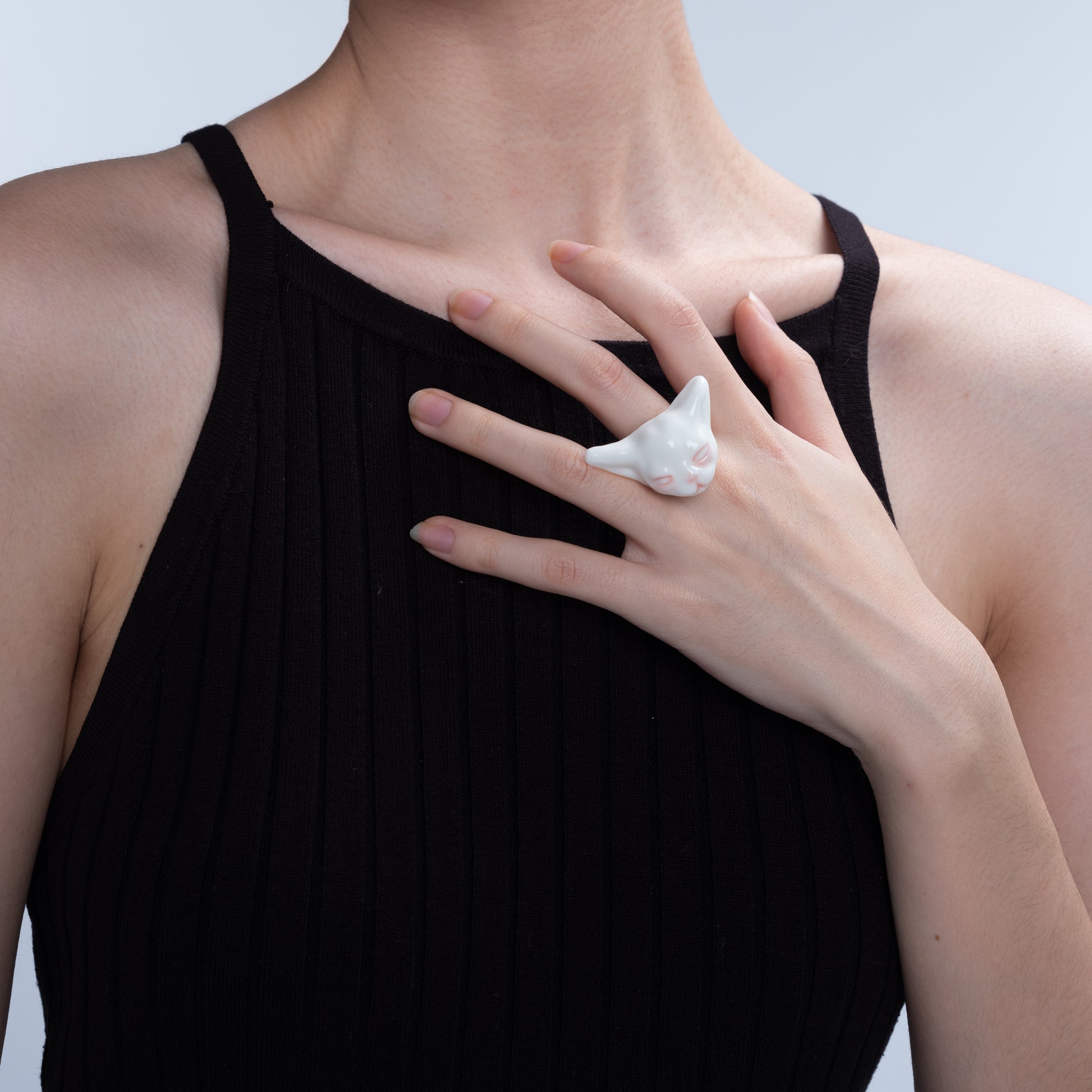 Werten Sie Ihren Stil mit unserem Keramik-Katzenring auf.