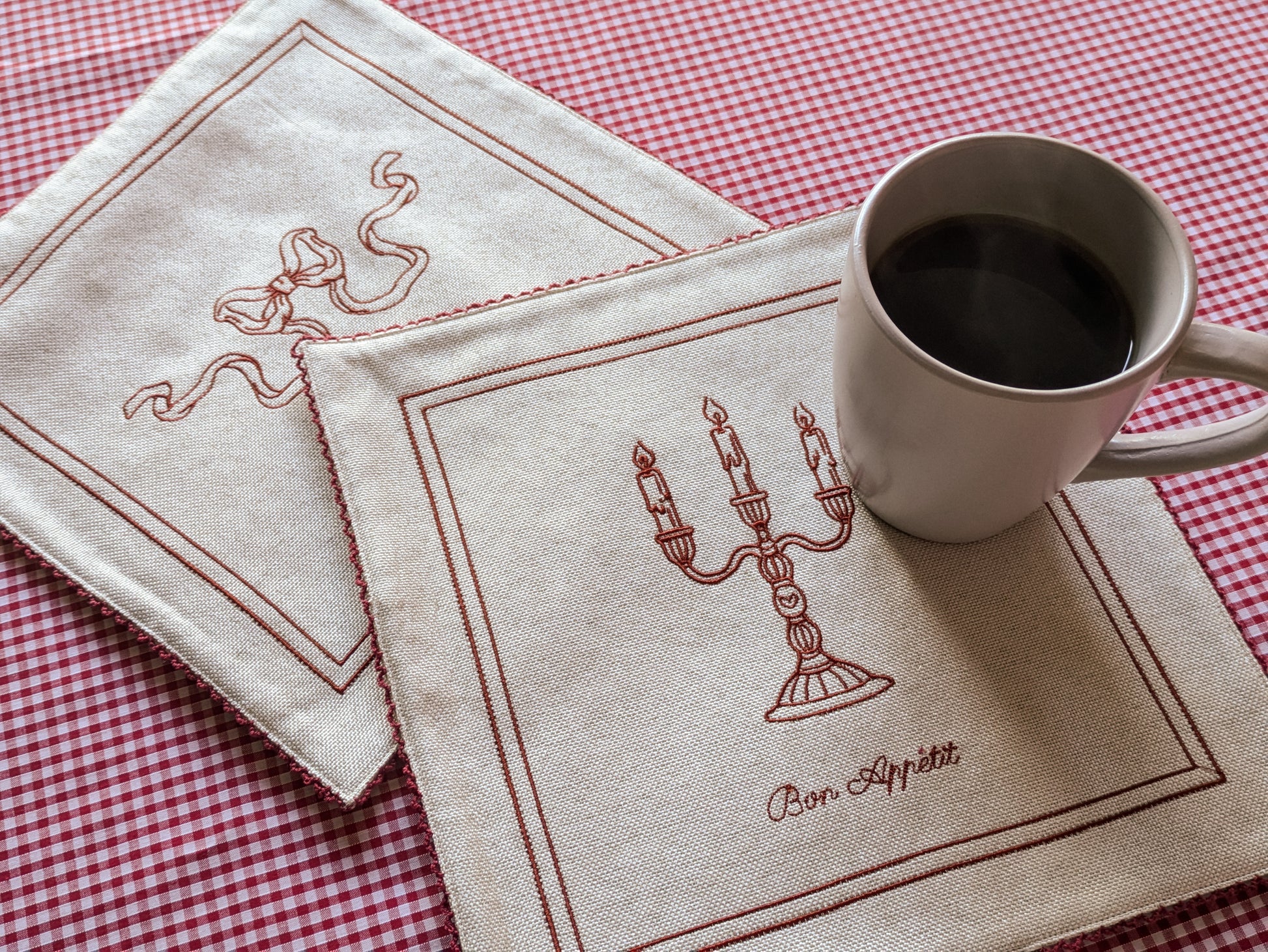 These vintage-inspired embroidered tea towels add an elegant touch to your kitchen or dining table. Featuring intricate candelabra, vine, and bow designs, these towels bring a timeless charm to your table décor while providing practical use. Crafted from high-quality fabric, they are durable and stylish, ideal for everyday use or special occasions. Perfect as a thoughtful gift or a delightful addition to your own home, these tea towels effortlessly combine functionality and sophistication.