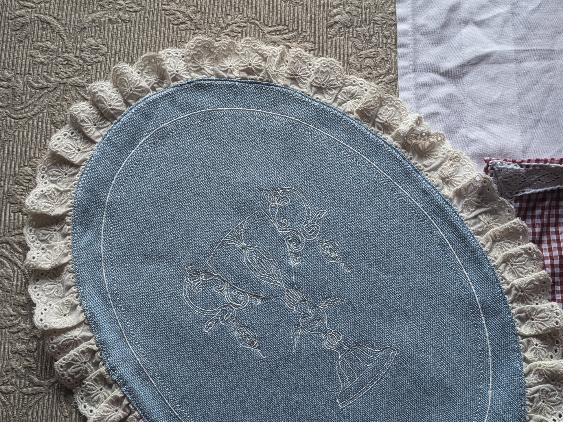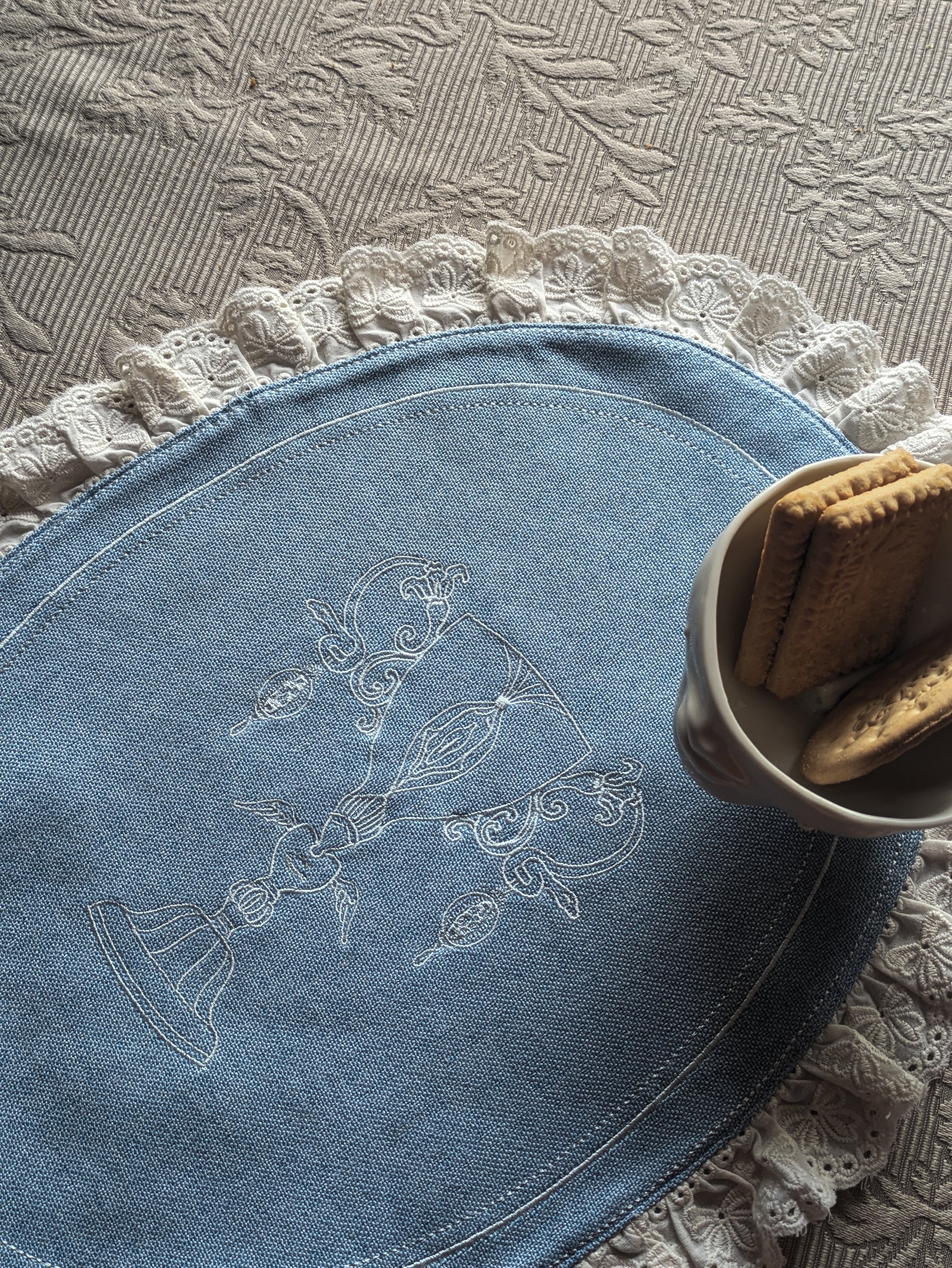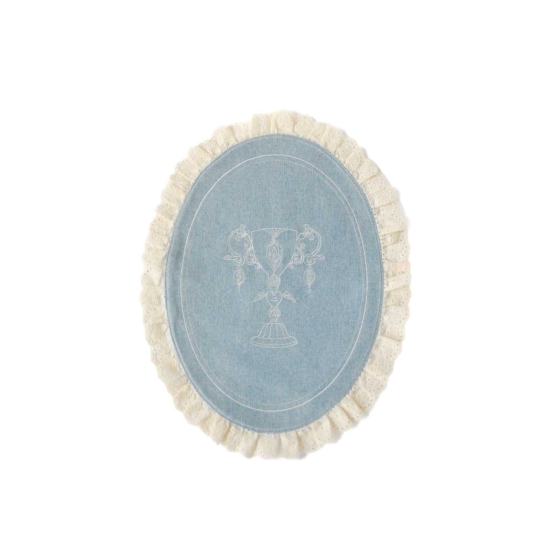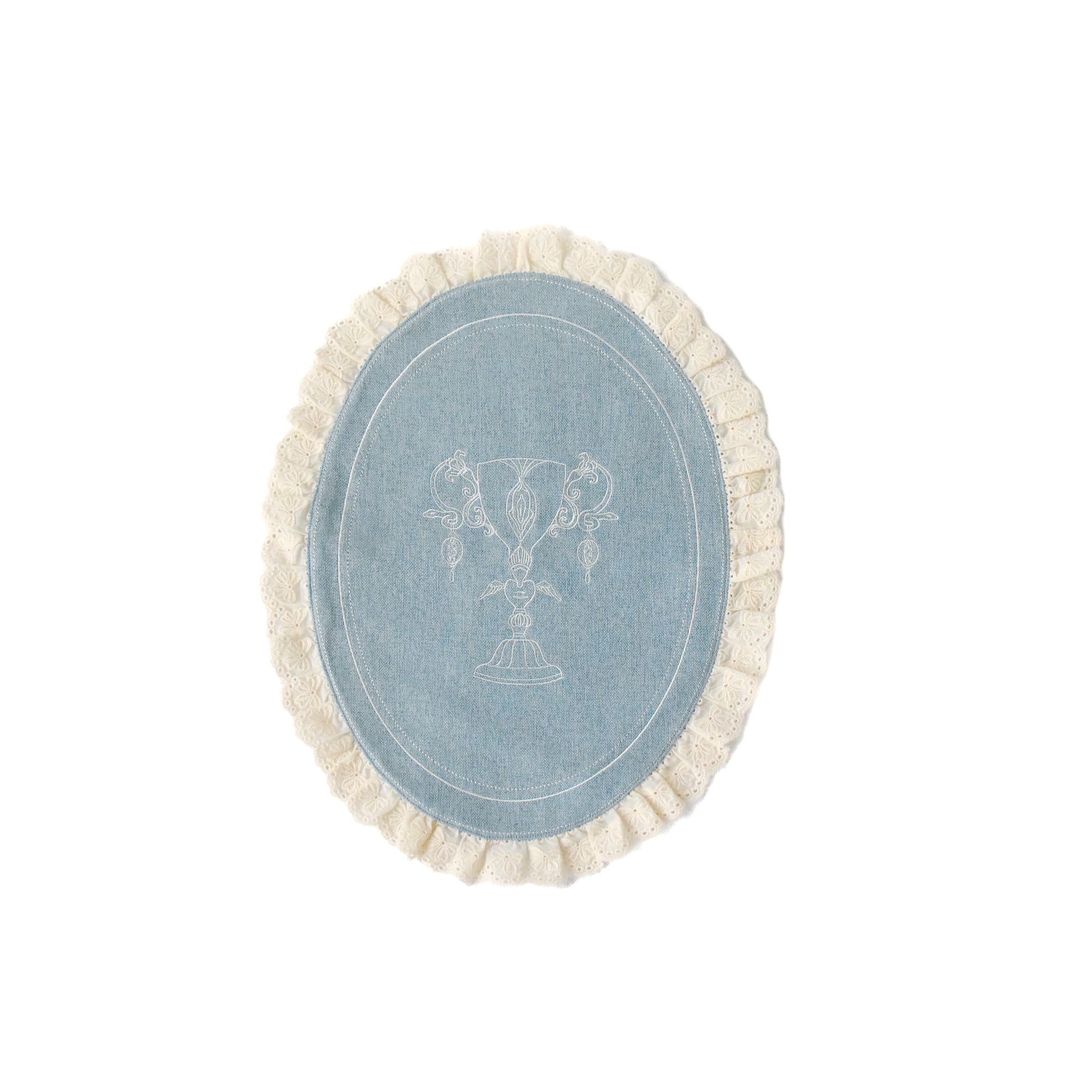Elegant Vintage-Inspired Embroidered Tea Towel Set – Chalice Design - large vingtage blue